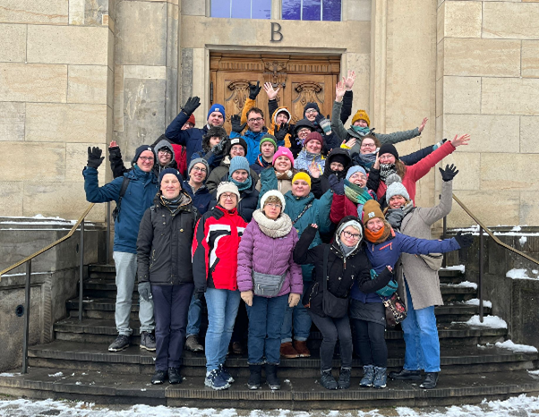 Am nächsten Morgen schliefen wir aus – dennoch schafften es fast alle zum Frühstück! – und brachen zur Therme in Bad Schandau auf. Dafür ging es per Zugfahrt durch die malerische sächsische Schweiz, unter anderem vorbei an der berühmten Bastei, von der sogleich aus dem Zug heraus munter Fotos geschossen wurden. Für heute waren nur Entspannung und ein gemütliches Programm angesagt! Der Großteil der Gruppe ließ sich nur allzu gerne in den warmen Wasserbecken der Therme, bevorzugt im Liquid Sound-Becken, beblubbern. Das Besondere und auch Schöne hier war, dass es ein Ruhebecken war, wir aber dennoch fröhlich plaudern konnten, denn Gebärdensprache ist doch eher visuell als laut. Ein paar weniger Thermenbegeisterte erkundeten nochmal Dresden und verbrachten so den ruhigen Neujahrstag. Auch an diesem Abend ging es zum allgemeinen Abschluss gemeinsam ins Restaurant, dieses Mal wieder in die altbekannte L´Osteria. Am nächsten Morgen konnten alle weitestgehend frisch ausgeruht und gut gestärkt die Heimreise antreten, der Kater vom Silvesterabend wurde in der Therme ausgeschwitzt. 😊 Mit einem Abschlussfoto und vielen Abschiedsumarmungen ging unser Silvester-Event im Osten Deutschlands dem Ende zu.